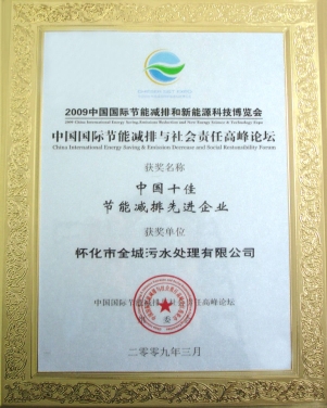 2009年3月在胡錦濤、溫家寶等中央領(lǐng)導出席的中國國際節(jié)能減排與新能源科技博覽會和高峰論壇上評為“中國十佳節(jié)能減排先進企業(yè)”。