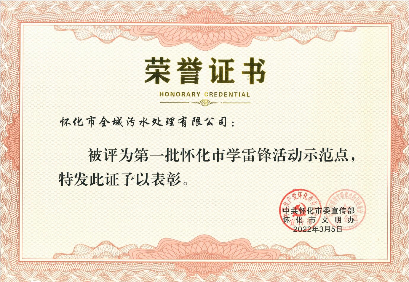 2022年3月被中共懷化市委宣傳部評為懷化市第一批“學雷鋒活動示范點”榮譽稱號